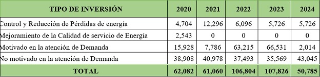 Los proyectos presentados se enfocan en: Inversiones motivadas para la atención de la demanda eléctrica (para obtener una mayor capacidad del sistema y poder atender incremento de consumos y/o conexión de nuevos clientes tanto en la zona urbana como en la zona rurales), inversiones no motivadas por la atención de la demanda eléctrica (sin obtener una mayor capacidad del sistema) y otros proyectos que, aunque no se originan por el crecimiento de la demanda requieren de la instalación de nuevos activos y nueva infraestructura en el sistema (ver detalle en Tabla 1). Dentro de esta última clasificación se encuentran los equipos y redes, la infraestructura contemplada en los planes de mejoramiento de la calidad del servicio y de sostenimiento de las pérdidas de energía eléctrica en el sistema, apuntándole al cumplimiento de las metas definidas por la CREG.